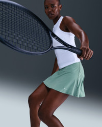 Made with super-smooth, ultra-stretchy fabric that dries quickly, this flouncy skirt makes it easy to focus on your swing. Built-in shorts with pockets offer storage for your essentials and coverage in all your stances. Benefits - Nike Dri-FIT technology moves sweat away from your skin for quicker evaporation, helping you stay dry and comfortable. - Drop-in pockets on both legs of inner shorts fit most phones. - Inner shorts let you tuck spare balls under the hem for convenient storage. Product Details - Body: 79% polyester/21% spandex. Rib: 88% polyester/12% spandex. Tight/Waist lining: 82% polyester/18% spandex.Gusset lining: 100% polyester. - Machine wash - Imported - Shown: Cannon/White - Style: FD5577-017 SIZE & FIT Model is wearing size S and is 5′11″180cm Standard fit: easy and traditional
