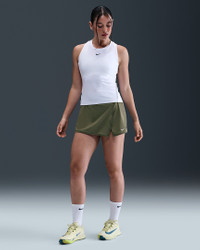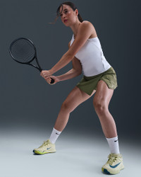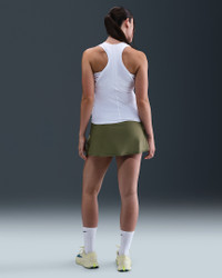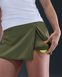 Made with super-smooth, ultra-stretchy fabric that dries quickly, this streamlined skirt makes it easy to focus on your swing. Built-in shorts with pockets offer storage for your essentials and coverage in all your stances. Benefits - Nike Dri-FIT technology moves sweat away from your skin for quicker evaporation, helping you stay dry and comfortable. - Drop-in pockets on both legs of inner shorts fit most phones. Product Details - Ribbed binding detail - Wrap-style skirt with overlap vent - Body: 79% polyester/21% spandex. Tight: 82% polyester/18% spandex. Waist lining: 82% polyester/18% spandex. Gusset lining: 100% polyester. - Machine wash - Imported - Shown: Medium Olive/White - Style: FD5574-222 SIZE & FIT Model is wearing size S and is 5′9″175cm Standard fit: easy and traditional