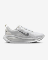 Maximum cushioning in the Vomero provides a comfortable ride for everyday runs. Our softest, most cushioned ride has lightweight ZoomX foam stacked on top of responsive ReactX foam in the midsole. Plus, a redesigned traction pattern offers a smooth heel-to-toe transition. Product Details - Weight: Approx. 263g/9.3oz (Women’s US 8) - Heel-to-toe drop: 10mm - MR-10 Last - Our best, most consistent fit - Not intended for use as Personal Protective Equipment (PPE) - Shown: White/Photon Dust/Summit White/Metallic Silver - Style: HM6804-104