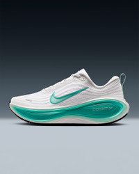 Take maximum cushioning to the next level with the Vomero Plus. It provides an ultra-comfortable ride for every day runs thanks to a mountainous stack of full-length ZoomX foam, the most responsive foam in the industry. Plus, the engineered mesh upper is made of soft, breathable yarn for a comfortable fit. Product Details - Weight: Approx. 230g/8.1oz (Women's US 8) - Heel-to-toe drop: 10mm - Webbed lace loops for an adjustable fit - Reflective details - Not intended for use as Personal Protective Equipment (PPE) - Shown: White/Mint Foam/Washed Teal/Bleached Turquoise - Style: HV8154-100