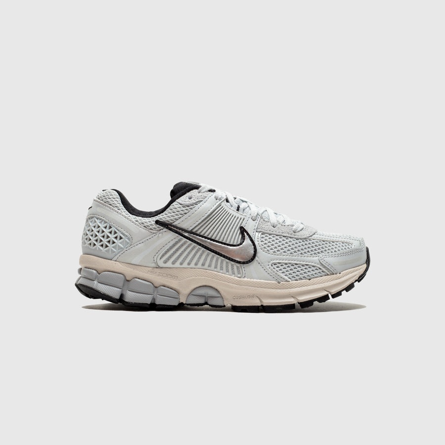 - FN6742 002 - Pure Platinum/Chrome-Lt Orewood Brown - A brand new colorway of the cult classic runner that originally debuted in 2006 - Pure platinum mesh upper with Pure platinum leather accents - Pure platinum leather overlays with 3M accents - Pure platinum TPU cage for added support - Pure platinum mesh tongue with "NIKE VOMERO 5" tongue tag - Chrome leather "SWOOSH" - Pure platinum TPU heel panel with triangle cutouts for maximum ventilation - Lt oreewood brown cushion foam midsole with "ZOOM AIR" unit in the forefoot - Black rubber outsole