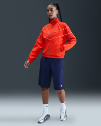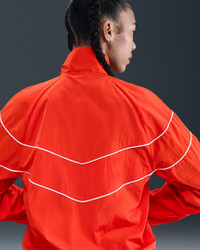 Reaching back to our roots, this roomy jacket's design lines pull inspiration from the original Windrunner. A water-repellent finish and UV technology built into the crinkle-woven fabric help keep you good to go come rain or shine. Benefits - Pockets provide quick storage for keys, phone and cold hands. - Sweat-wicking jersey lining in upper body and arms feels soft and comfortable. - Water-repellent finish helps keep you dry in wet weather. Product Details - Body: 100% nylon. Lining: 75% polyester/13% cotton/12% rayon. Panels lining: 100% polyester. - Embroidered Swoosh logo - This product provides UVA and UVB protection from the sun only in the areas covered by the garment. To protect exposed areas, the use of good quality sunscreen is recommended. - Machine wash - Imported - Shown: Picante Red/Sail/Sail - Style: FV6304-633 SIZE & FIT Model is wearing size S and is 5′9″175cm Loose fit: roomy and relaxed