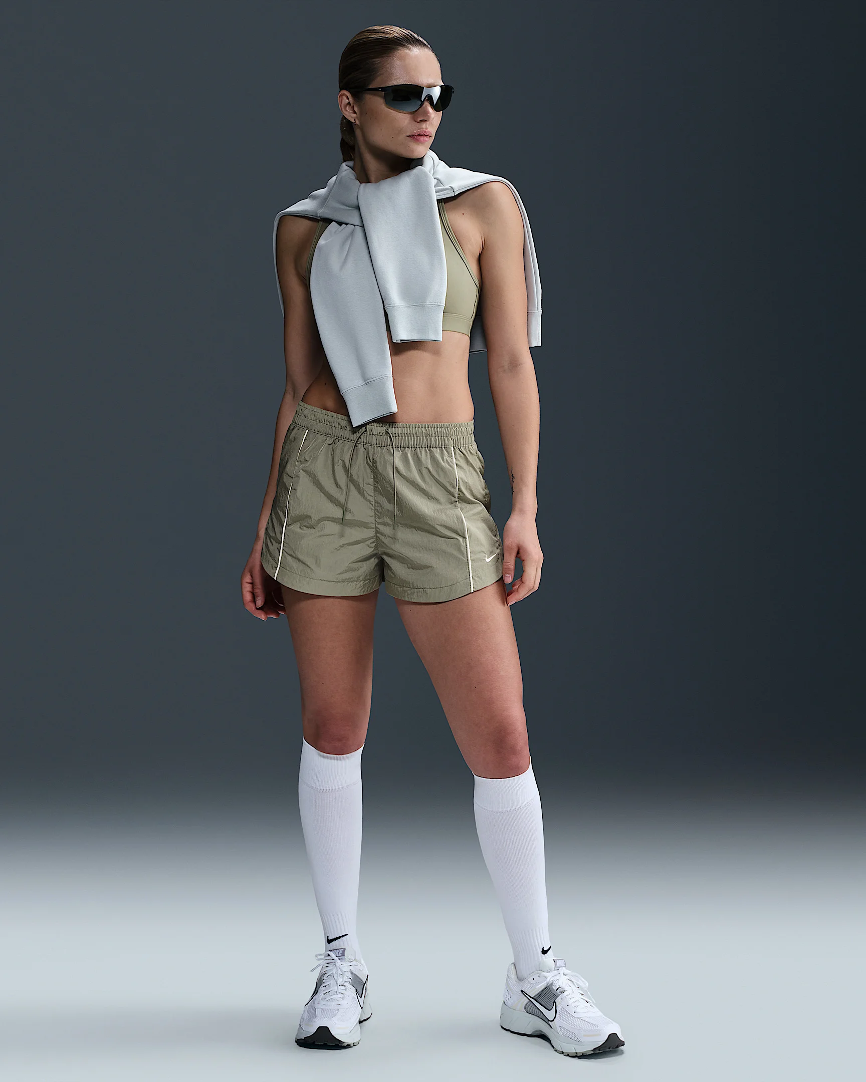 With crinkle-woven fabric and a soft, sweat-wicking jersey lining, these easy-fitting shorts give you both classic sport style and comfort. Benefits - Snap pockets provide secure storage. - Lightweight fabric moves sweat away from your skin for quick evaporation, helping you stay dry and comfortable. Product Details - Body: 100% nylon. Lining: 75% polyester/13% cotton/12% rayon. - Embroidered Swoosh logo - This product provides UVA and UVB protection from the sun only in the areas covered by the garment. To protect exposed areas, the use of good quality sunscreen is recommended. - Machine wash - Imported - Shown: Light Army/Sail/White - Style: FV7500-320 SIZE & FIT Model is wearing size S and is 5′10″178cm Standard fit: easy and traditional