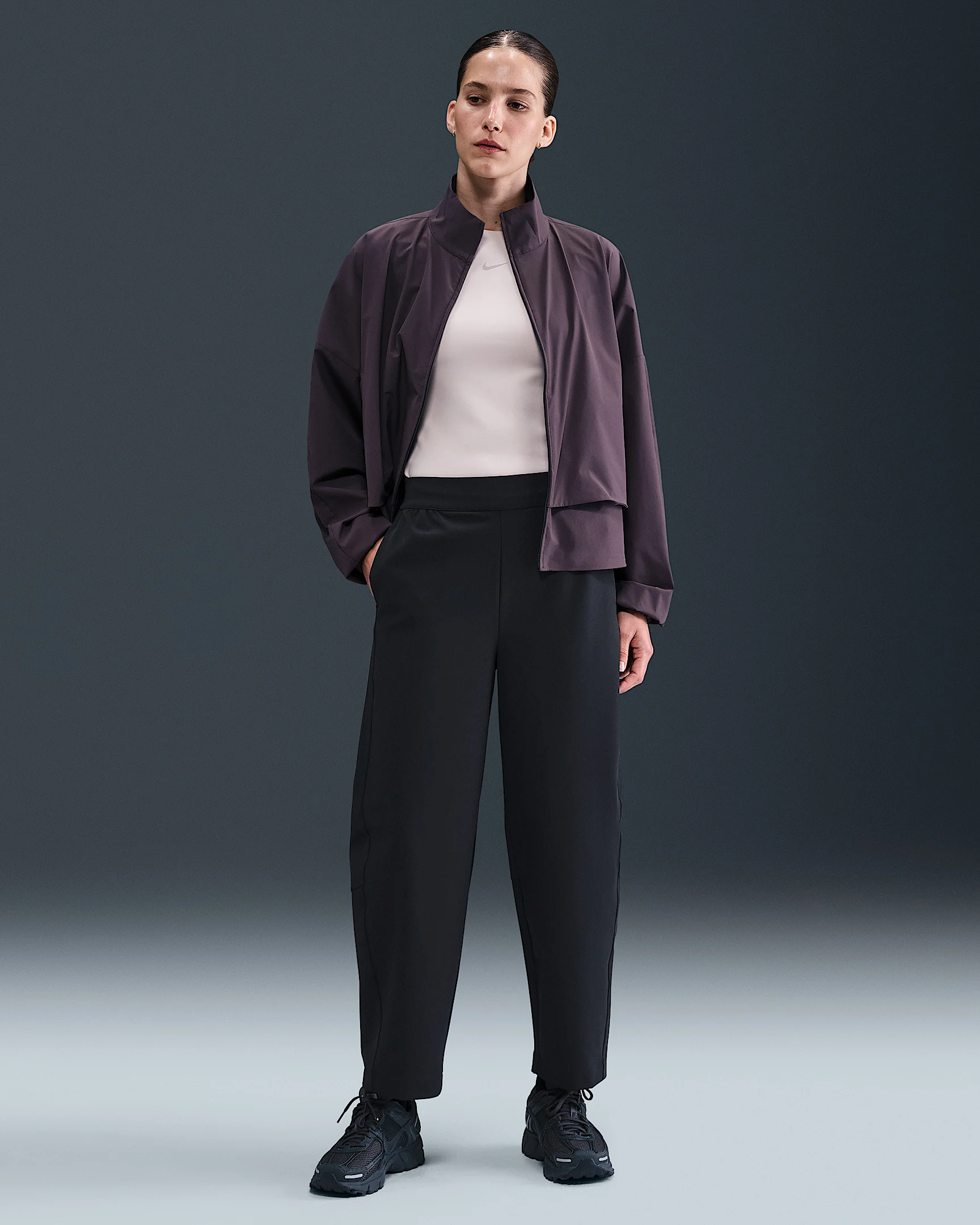 Lightweight and tailored with four-way stretch, our PerfectStretch fabric is designed to keep up with you all day long. With a loose fit and sweat-wicking tech, these barrel-leg pants give you room to move and comfort that doesn't quit. Benefits - Nike Dri-FIT technology moves sweat away from your skin for quicker evaporation, helping you stay dry and comfortable. - Elastic waistband is gathered in back for dynamic stretch. Product Details - Signature locker loop on left hip - Side-seam pockets - 83% polyester/17% spandex - Machine wash - Imported - Shown: Black/Dark Smoke Grey - Style: HM8847-010 SIZE & FIT Model is wearing size S and is 5′10″178cm Loose fit: roomy and relaxed 78 length: hits at ankle
