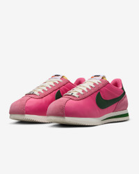 You spoke. We listened. Based on your feedback, we've revamped the original Cortez while maintaining the retro appeal you know and love. This textile and suede version has a wider toe area and firmer side panels, so you can comfortably wear them all day without any warping. Cortez fans—this one’s for you. Benefits - Reengineered upper is extra durable to help prevent warping, creasing and scuffing. - Wider toe box provides a more comfortable fit. - Firmer side panels help keep your foot in place for a more stable feel. - Herringbone outsole pattern pairs durable traction and heritage style. Product Details - Padded collar - Foam midsole - Rubber outsole - Shown: Pinksicle/Sail/White/Fir - Style: IH2361-600