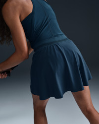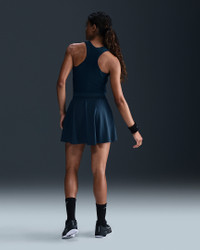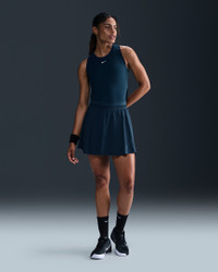 Run the court in this sweat-wicking tennis skirt. The light and flowy woven outer layer gives you freedom to move while fitted built-in shorts offer secure coverage and storage. Benefits - Nike Dri-FIT technology moves sweat away from your skin for quicker evaporation, helping you stay dry and comfortable. - Inner shorts let you tuck spare balls under the hem for convenient storage. - Mesh in waistband enhances breathability. - Drop-in pockets on both legs of inner shorts fit most phones. Product Details - Body/Gusset lining: 100% polyester. Tight/Panels lining: 78-79% polyester/21-22% spandex. Elastic: 86% polyester/14% spandex. - NikeCourt logo on left thigh - Machine wash - Imported - Shown: Armory Navy/Armory Navy - Style: FZ6726-478 SIZE & FIT Model is wearing size S and is 5′10″178cm Standard fit: easy and traditional