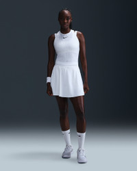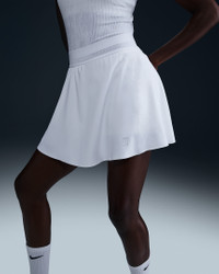 Run the court in this sweat-wicking tennis skirt. The light and flowy woven outer layer gives you freedom to move while fitted built-in shorts offer secure coverage and storage. Benefits - Nike Dri-FIT technology moves sweat away from your skin for quicker evaporation, helping you stay dry and comfortable. - Inner shorts let you tuck spare balls under the hem for convenient storage. - Mesh in waistband enhances breathability. - Drop-in pockets on both legs of inner shorts fit most phones. Product Details - Body/Gusset lining: 100% polyester. Tight/Panels lining: 78-79% polyester/21-22% spandex. Elastic: 86% polyester/14% spandex. - NikeCourt logo on left thigh - Machine wash - Imported - Shown: White/White - Style: FZ6726-100 SIZE & FIT Model is wearing size S and is 5′9″175cm Standard fit: easy and traditional