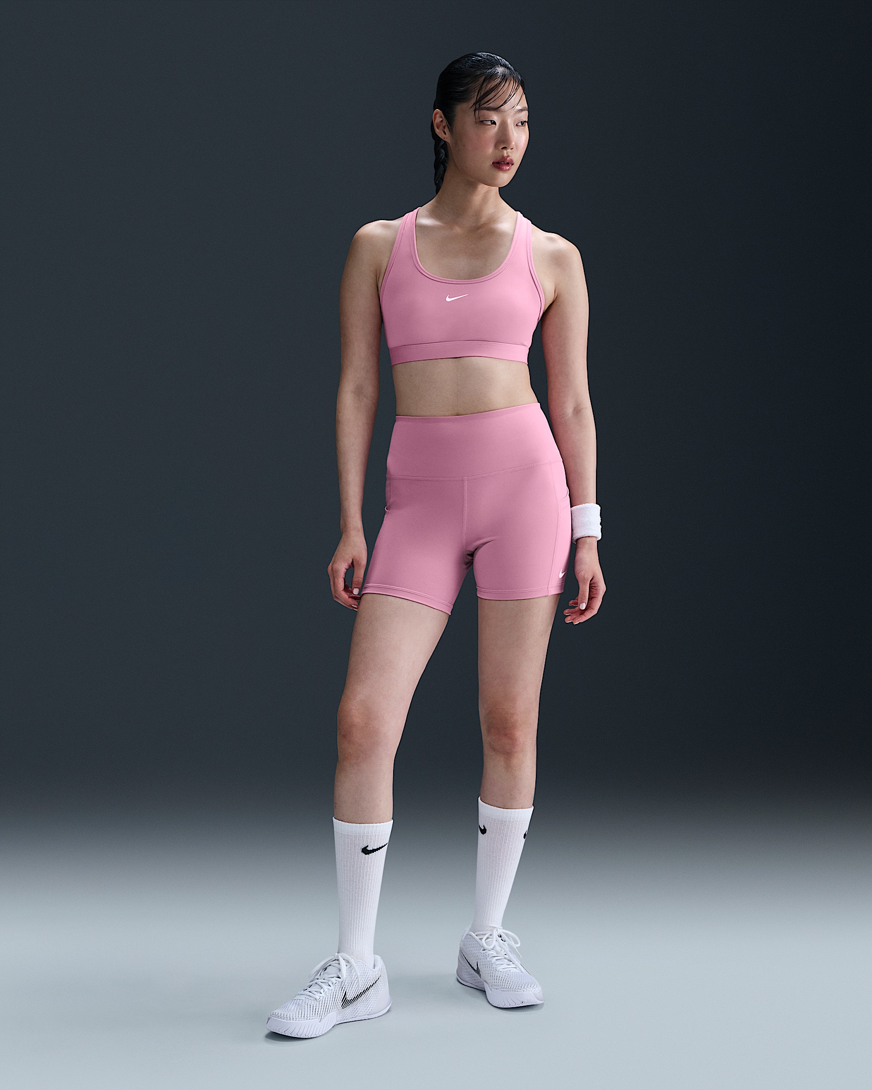 Run the court in these sweat-wicking ball shorts. Stretchy fabric gives you a secure feel and comfortable coverage. Drop-in pockets on either side hold your essentials. Benefits - Nike Dri-FIT technology moves sweat away from your skin for quicker evaporation, helping you stay dry and comfortable. - Tuck spare balls under the hem for convenient storage. Product Details - Body/Waist lining: 78-79% polyester/21-22% spandex. Gusset lining: 100% polyester. - Machine wash - Imported - Shown: Elemental Pink/White - Style: FZ6677-699 SIZE & FIT Model is wearing size S and is 5′9″175cm Tight fit: snug and form-fitting