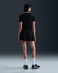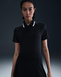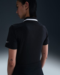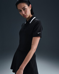 With a tailored fit and classic fold-over collar, this polo gives you a polished look. Lightweight and silky-smooth, the fabric is equipped with UV protection and dries quickly, helping you stay cool and comfortable. Benefits - Nike Dri-FIT technology moves sweat away from your skin for quicker evaporation, helping you stay dry and comfortable. - Optimal length makes top easy to tuck in to high-waisted and mid-rise bottoms. Product Details - Shine detail on placket - Bungee cord button loops - 88% polyester/12% spandex - Machine wash - Imported - This product provides UVA and UVB protection from the sun only in the areas covered by the garment. To protect exposed areas, the use of good quality sunscreen is recommended. - Shown: Black/White/White - Style: FZ6297-010 SIZE & FIT Model is wearing size S and is 5′10″178cm Sm fit: sleek and tailored
