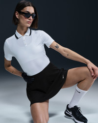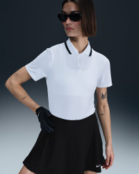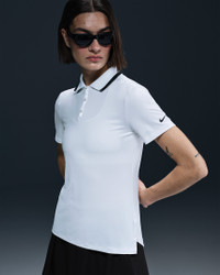 With a tailored fit and classic fold-over collar, this polo gives you a polished look. Lightweight and silky-smooth, the fabric is equipped with UV protection and dries quickly, helping you stay cool and comfortable. Benefits - Nike Dri-FIT technology moves sweat away from your skin for quicker evaporation, helping you stay dry and comfortable. - Optimal length makes top easy to tuck in to high-waisted and mid-rise bottoms. Product Details - Shine detail on placket - Bungee cord button loops - 88% polyester/12% spandex - Machine wash - Imported - This product provides UVA and UVB protection from the sun only in the areas covered by the garment. To protect exposed areas, the use of good quality sunscreen is recommended. - Shown: White/Black/Black - Style: FZ6297-100 SIZE & FIT Model is wearing size S and is 5′10″178cm Sm fit: sleek and tailored