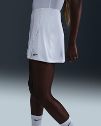 Made with super-smooth, ultra-stretchy fabric that dries quickly, this streamlined skirt makes it easy to focus on your swing. Built-in shorts with pockets offer storage for your essentials and coverage in all your stances. Benefits - Nike Dri-FIT technology moves sweat away from your skin for quicker evaporation, helping you stay dry and comfortable. - Drop-in pockets on both legs of inner shorts fit most phones. Product Details - Ribbed binding detail - Wrap-style skirt with overlap vent - Body: 79% polyester/21% spandex. Tight: 82% polyester/18% spandex. Waist lining: 82% polyester/18% spandex. Gusset lining: 100% polyester. - Machine wash - Imported - Shown: White/Black - Style: FD5574-100 SIZE & FIT Model is wearing size S and is 5′9″175cm Standard fit: easy and traditional