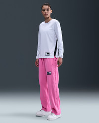 Checking into the game? Or just checking it out as a fan? These tearaway pants are ready for whatever your hooper ambitions are. Benefits - Smooth on the outside with unbrushed loops on the inside, this midweight French terry helps offer breathability and comfort. - Loose fit for a roomy feel and easy layering. Product Details - Snap buttons on side seams - Mesh hand pockets - Elastic waistband with drawcord - Imported - Body: 80% cotton/20% polyester. Pocket bags: 100% polyester. - Machine wash - Shown: Playful Pink - Style: IB3560-675 SIZE & FIT Model is wearing size S and is 5′8″173cm Loose fit: roomy and relaxed Fl length: hits below ankle