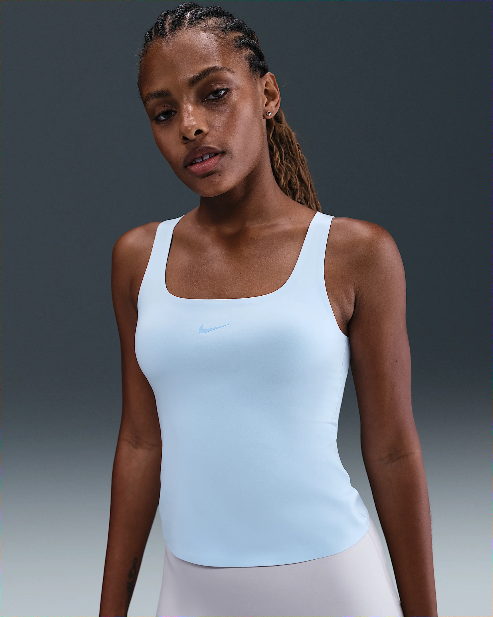 Show off your form—not your sweat. Designed with Stealth Evaporation technology, this fitted top conceals moisture to help you stay looking fresh. Midweight, ultrasoft fabric offers smooth coverage so the only thing that shines through is your confidence. Product Details - Silicone Swoosh logo at center chest - 76% polyester/24% spandex - Machine wash - Imported - Shown: Celestine Blue/Psychic Blue - Style: HQ8082-441 SIZE & FIT Model is wearing size S and is 5'11"179cm Tight fit: snug and form-fitting