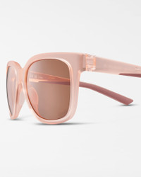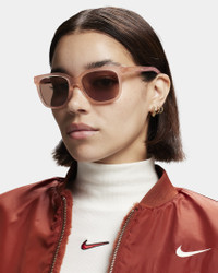 The Nike Grand sunglasses are equally stylish as they are comfortable. These shades are vintage-inspired in looks with an oversized, rounded shape and built for ease with softly rubberized and adjustable temple tips that bend for effortless adjustability. Benefits - Soft, comfortable rubber inlay nose pads provide stability and grip. - 6-base curved lens offers medium coverage with moderate peripheral light blockage. - Adjustable temple arms with rubber tips for snug, stable grip. - Durable, high-tension hinges. Product Details - Injected frame material is derived from at least 40% castor bean oil - Prescription-friendly frame - 100% UVA/UVB protection - Metal plaque Swoosh logo - 54-19-135 (Lens Width-Bridge-Temple Length) - Shown: Blush Pink - Style: NKFV2410-801
