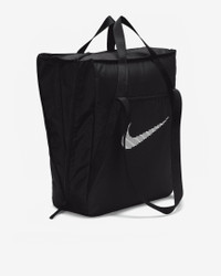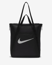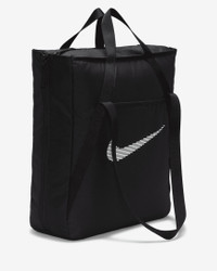 This tote bag is as multidimensional as you are. No matter what your fitness journey is, the Nike Gym Tote is made to handle it. Multiple deep pockets line the inside of this bag, both open and zippered for extra security. The front and back features pockets for the small things you want easy access to. And, the size of this tote is deceptive—the sides feature expanding fabric panels for extra space whenever you need it. Benefits - Pockets on the outside have snap on 1 side and hook-and-loop closure on the other. - Provides 2 handle options—long shoulder tote and short grab-and-go. Product Details - 16"L x 13"W x 5"D - 100% polyester - Spot clean - Imported - Shown: Black/Black/White - Style: DR7217-010