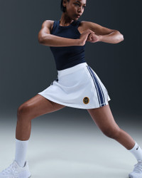 Bring the heat all day in this snug, fitted skort. The inner shorts help keep you covered as you go from one activity to the next while a slightly flared skirt adds all-day style. Benefits - Nike Dri-FIT technology moves sweat away from your skin for quicker evaporation, helping you stay dry and comfortable. - Elastic waistband sits snugly against waist without pinching or binding. - Inner pockets at sides are large enough to hold most phones. Product Details - Body: 83% polyester/17% spandex. Mesh: 81% polyester/19% spandex. - Machine wash - Imported - Shown: White/Midnight Navy/Midnight Navy - Style: IH7748-100 SIZE & FIT Model is wearing size S and is 5′7″170cm Tight fit: snug and form-fitting
