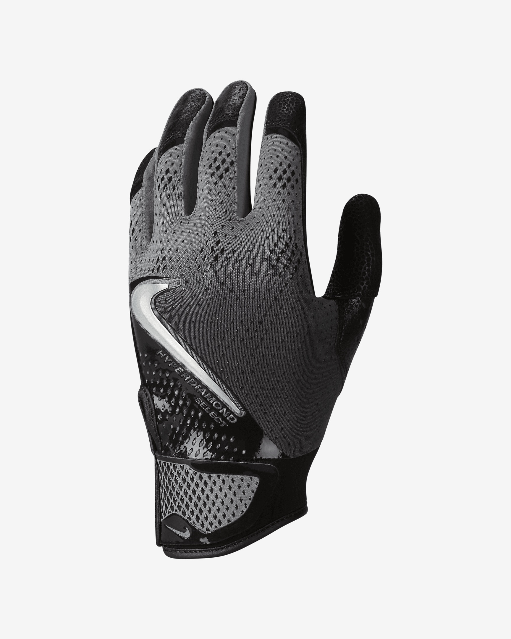 A comfortable glove can make or break your time at bat. Designed to be durable, these gloves feature a textured leather palm for grip and lightweight mesh on the back for breathability. Padding at the palm helps reduce sting and absorb shock whether you're batting or sliding into home. Benefits - Classic textured leather palm helps add durability and grip. - Lightweight mesh on the back of the glove helps provide flexibility and breathability. - Padded palm helps to reduce sting and absorb shock. Product Details - Palm: 93% goat-skin leather/7% neoprene. Back: 57% polyester/23% silicone/14% PU leather/6% spandex. Other: 45% nylon/24% PU leather/20% neoprene/6% spandex/5% silicone. - Hand wash - Imported - Shown: Black - Style: N1009788-062