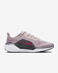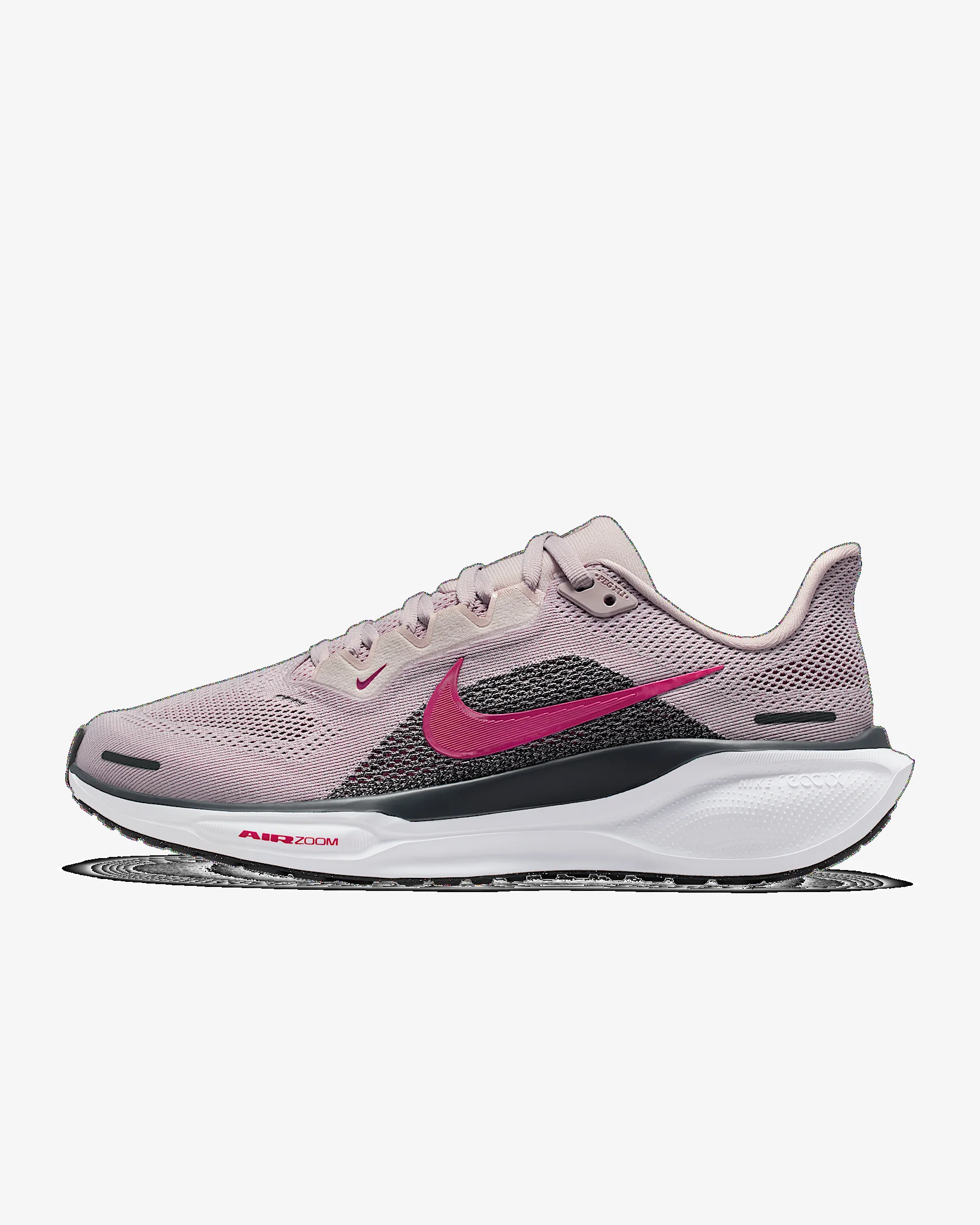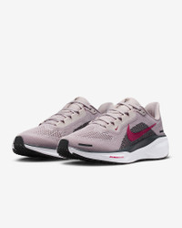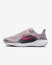 Responsive cushioning in the Pegasus provides an energized ride for everyday road running. Experience lighter-weight energy return with dual Air Zoom units and a ReactX foam midsole. Plus, improved engineered mesh on the upper decreases weight and increases breathability. More Benefits - ReactX foam midsole - Lighter, more breathable engineered mesh upper Product Details - Weight: Approx. 251g/8.9oz (Women's US 8) - Heel-to-toe drop: 10mm - MR-10 Last - Our best, most consistent fit (same as Pegasus 40) - Reflective details - Not intended for use as Personal Protective Equipment (PPE) - Shown: Platinum Violet/Off Noir/Silt Red/Sweet Beet - Style: FD2723-014