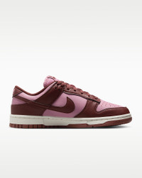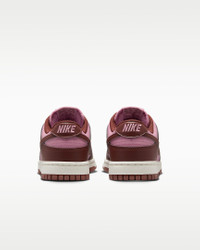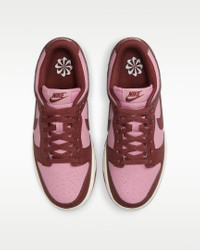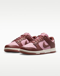 You can always count on a classic. The Dunk Low pairs its iconic color blocking with premium materials and plush padding for game-changing comfort that lasts. The styling possibilities are endless—how will you wear your Dunks? Benefits - Crisp leather upper has a slight sheen and ages to soft perfection. - Foam midsole offers lightweight, responsive cushioning. - Rubber outsole with classic pivot circle adds durable traction and heritage style. Product Details - Padded collar - Perforations on toe box - Shown: White/Dark Pony/Sail/Elemental Pink - Style: DD1873-114 SIZE & FIT Fits large; we recommend ordering a half size down