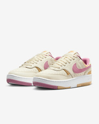 Layers upon layers of dimensional style—that's a force to be reckoned with. Offering both comfort and versatility, these kicks are rooted in heritage basketball culture. Collar materials pay homage to vintage sport while the subtle platform elevates your look, literally. The Gamma Force is forging its own legacy: court style that can be worn all day, wherever you go. Benefits - Leather, suede and mesh layers add a durable and dimensional look to any outfit. - Subtle platform lift gives you just enough height. - Speckled Nike Grind rubber outsole contains at least 5% recycled content. Product Details - Rubber midsole - Rubber outsole - Shown: Soft Pearl/Sesame/White/Elemental Pink - Style: DX9176-005 SIZE & FIT Fits large; we recommend ordering a half size down