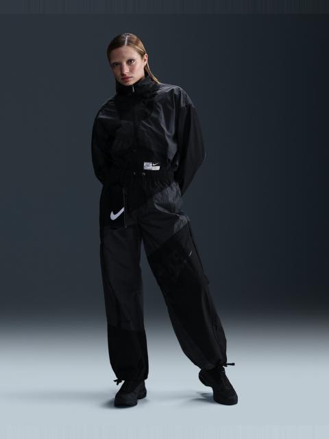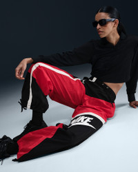 Show up and show out in these extra-long pants. Paneling and sewn-on tape add dimension to your look, while drawcords at the ankles let you play with proportion. Benefits - Drawcords at cuffs give you styling options. - Articulated knees add dimension to the loose fit. Product Details - Body: 100% nylon. Pocket bags: 100% polyester. - Elastic waistband with drawcord - Hand pockets - Embroidered Swoosh logo on left thigh - Machine wash - Imported - Shown: University Red/Black/Sail/Sail - Style: HJ4178-657 SIZE & FIT Model is wearing size S and is 5′11″180cm Loose fit: roomy and relaxed Fl length: hits below ankle