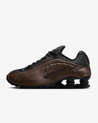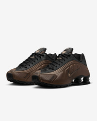 A recrafted version of the 2001 icon, the Nike Shox R4 replicates the original with its synthetic and textile upper, design lines and laser perforations. Nike Shox cushioning distributes weight to maximize comfort and provide a performance-inspired look. Benefits - Originally designed to support the stride of runners, Nike Shox columns provide responsive cushioning. - Upper is a near-exact replica of the original 2001 Nike Shox. - Modified, circular waffle outsole gives traction. - Laser perforations throughout provide ventilation. Product Details - Not intended for use as Personal Protective Equipment (PPE) - Shown: Off Noir/Ironstone/Dark Smoke Grey/Off Noir - Style: AR3565-007