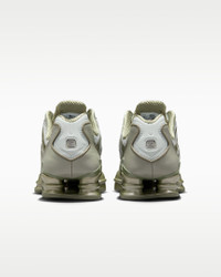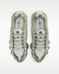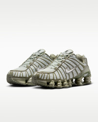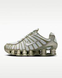 The Nike Shox TL takes mechanical cushioning to the next level. A recrafted version of the 2003 icon, it features breathable mesh in the upper and full-length Nike Shox technology for optimal impact absorption and a bold look on the streets. Benefits - Nike Shox technology combines resilient, flexible columns with moderator plates for outstanding cushioning that compresses and regains its shape. - Design is a near-exact replica of the 2003 Nike Shox TL. - Molded overlays throughout the midfoot provide support and a snug fit. - TPU plate in the heel supplies lateral stability and support. Product Details - Synthetic and textile upper - Rubber outsole - Not intended for use as Personal Protective Equipment (PPE) - Shown: Light Silver/Light Army/White - Style: AR3566-006