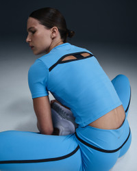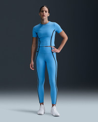 Nike One works for it all. This top's midweight, peachy-soft fabric stretches with you and dries quickly. An opening at the back helps keep you cool. Benefits - Nike Dri-FIT technology moves sweat away from your skin for quicker evaporation, helping you stay dry and comfortable. - Taping adds definition and contrast. Product Details - 80% polyester/20% spandex - Reflective Swoosh logo at center back - Not intended for use as Personal Protective Equipment (PPE) - Machine wash - Imported - Shown: University Blue/Armory Navy/Black - Style: HM9637-412 SIZE & FIT Model is wearing size S and is 5′10″178cm Tight fit: snug and form-fitting
