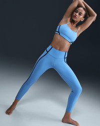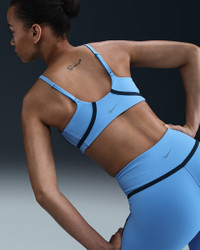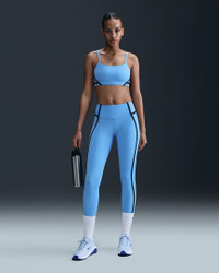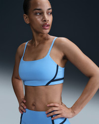 Nike One works for it all. This bra's convertible straps make it easy to wear under a variety of tops, while midweight, peachy-soft fabric stretches with you and dries quickly. Benefits - Nike Dri-FIT technology moves sweat away from your skin for quicker evaporation, helping you stay dry and comfortable. - Light support gives you a gentle hold with plenty of freedom. Product Details - Body: 80% polyester/20% spandex. Upper front lining: 88% polyester/12% spandex. Panels lining: 80% polyester/20% spandex. - Machine wash - Imported - Reflective Swoosh logo at center back - Not intended for use as Personal Protective Equipment (PPE) - Shown: University Blue/University Blue/Armory Navy/Black - Style: HF5366-412 SIZE & FIT Model is wearing size S Model height: 5′10″177cm Model bust: 32″81cm Tight fit: snug and form-fitting Light support: feels ke a soft hug with plenty of freedom