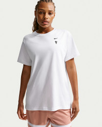 Think your game is point? Got that rock on a string? Flaunt it in this oversized t-shirt that comes with a slight drape for shooting sessions or off-court style. Benefits - Midweight cotton fabric feels soft and has a slight drape. - Oversized fit offers a spacious feel. Product Details - Swoosh logos - Photo graphic on back - 100% cotton - Machine wash - Imported - Shown: White - Style: IM0301-100 SIZE & FIT Model is wearing size S and is 5′11″179cm Oversized fit: exaggerated and spacious
