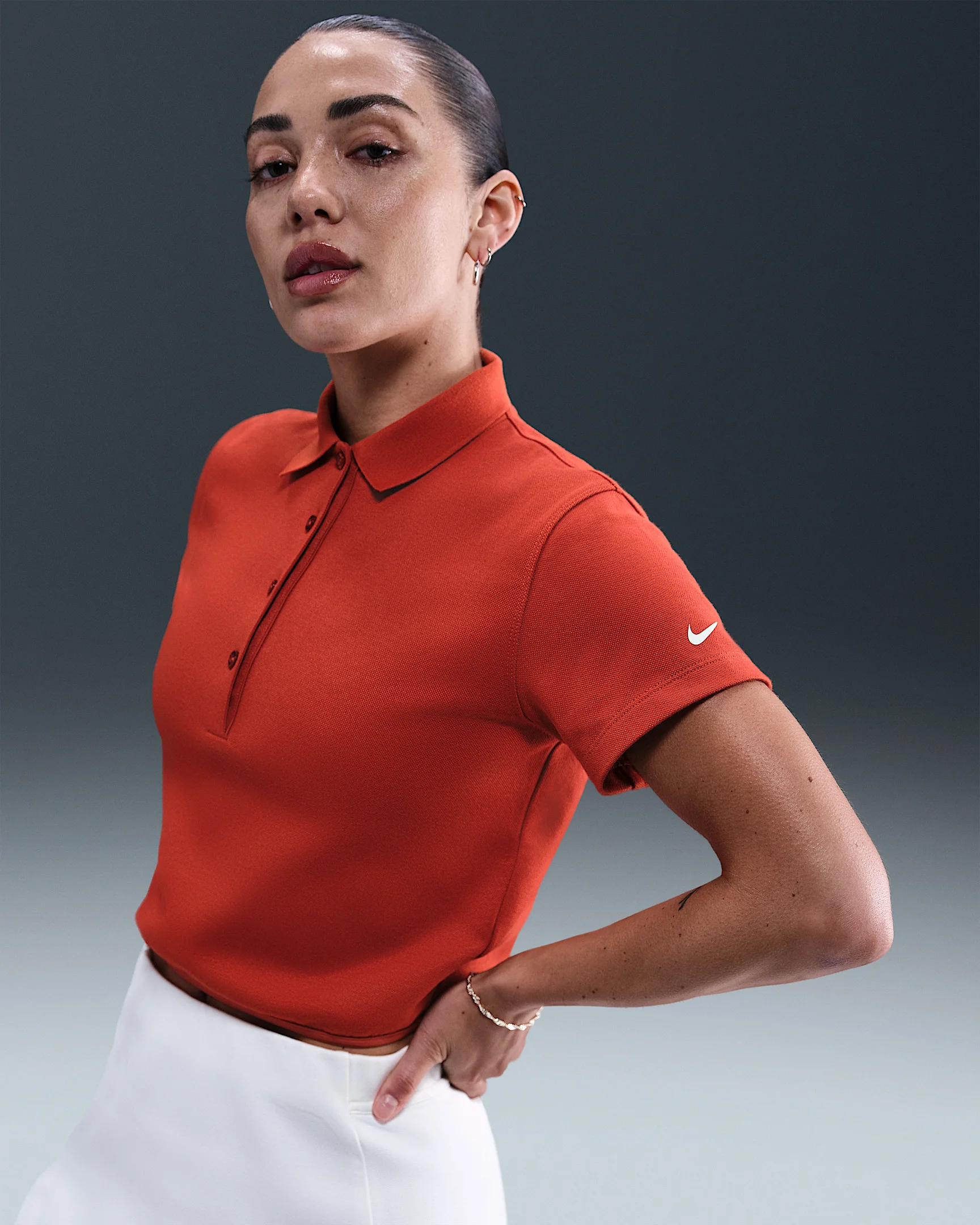 This timeless polo gets a modern update with a slightly cropped length and elastic at the hem for a fresh golf look. It's crafted in midweight pique fabric for breathable comfort across the whole course. Product Details - Nike Golf logo at back - Swoosh logo - 4-button placket - 70% cotton/30% polyester - Machine Wash - Imported - Shown: Dragon Red/Sail - Style: IF8528-626 SIZE & FIT Model is wearing size S and is 5′6″168cm Standard fit: easy and traditional
