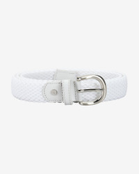 Stay comfortable through all 18 holes. Durable materials and a flexible design help this belt move with you through every swing. Product Details - 55% polypropylene/30% rubber/10% leather/5% polyester - Width: 30mm - Spot clean - Imported - Shown: White - Style: 13135-122