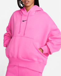 Grounded in style, comfort and versatility, meet our take on luxury loungewear. Our roomiest fit paired with exaggerated details (like the oversized pocket and taller ribbing) ensures this hoodie is anything but basic. All that's left to decide is whether to style it with the matching sweats or other pieces from your wardrobe. Benefits - Our midweight brushed fleece feels extra soft on the inside and smooth on the outside, helping you stay cozy while keeping its structured shape. - Dropped shoulder seams and roomy sleeves provide a relaxed, spacious feel. Product Details - Elongated ribbing - Drawcord hood - Front pocket - Body: 80% Cotton/20% Polyester. Hood lining: 100% Cotton. - Machine wash - Imported - Shown: Playful Pink/Black - Style: DQ5858-675 SIZE & FIT Model is wearing size S and is 5′10″177cm Oversized fit: exaggerated and spacious Fits large; we recommend ordering a size down