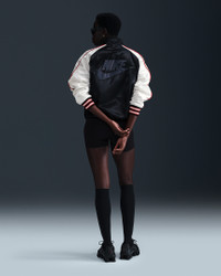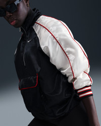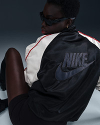 With an oversized fit and a light fill, this jacket adds dimension to your look. Satin adds a little shine while sweat-wicking technology helps keep you comfortable as you move through your day. Product Details - Body/Fill: 100% polyester. Lining: 100% nylon. - Elastic at hem - Front pocket with hook-and-loop closure - Embroidered Swoosh logo on left chest - Machine wash - Imported - Shown: Black/Sail/University Red/Sail - Style: HF9435-010 SIZE & FIT Model is wearing size S and is 5′11″180cm Oversized fit: exaggerated and spacious
