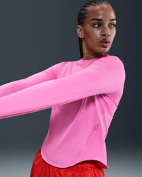 Using insights from runners like you, we prioritized functionality to refresh our Swift essentials. This lightweight top has been designed to help reduce chafing. It's soft, sweat-wicking and helps block out UV rays so you can focus on your miles, and nothing else. Product Details - Reflective Swoosh logo on left chest - Reflective graphics on sleeves and back - Not intended for use as Personal Protective Equipment (PPE) - This product provides UVA and UVB protection from the sun only in the areas covered by the garment. To protect exposed areas, the use of good quality sunscreen is recommended. - Body: 88% polyester/12% spandex - Machine wash - Imported - Shown: Playful Pink - Style: HQ0503-675 SIZE & FIT Model is wearing size S and is 5′10″177cm Standard fit: easy and traditional