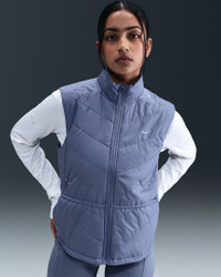 Don't let chilly temps stop you from running. A smooth, water-repellent shell teams up with synthetic insulation and a heat-regulating back panel to give you lightweight warmth in a made-to-move design. Benefits - Nike Therma-FIT technology helps manage your body’s natural heat to help keep you warm in cold-weather conditions. - Synthetic fill helps keep you insulated and warm. - Drawcord at the waist lets you cinch in the vest for a more tailored fit. - Brushed knit back panel offers the stretch you need for easy movement. - Zippered side pockets offer secure storage for small essentials. Product Details - Body/Lining/Fill/Back of panels fabric: 100% polyester. Face of panels fabric: 82% polyester/18% spandex. - Reflective details - Whistle at collar - Not intended for use as Personal Protective Equipment (PPE) - Machine wash - Imported - Shown: World Indigo - Style: HV2655-499 SIZE & FIT Model is wearing size S and is 5′7″170cm Standard fit: easy and traditional