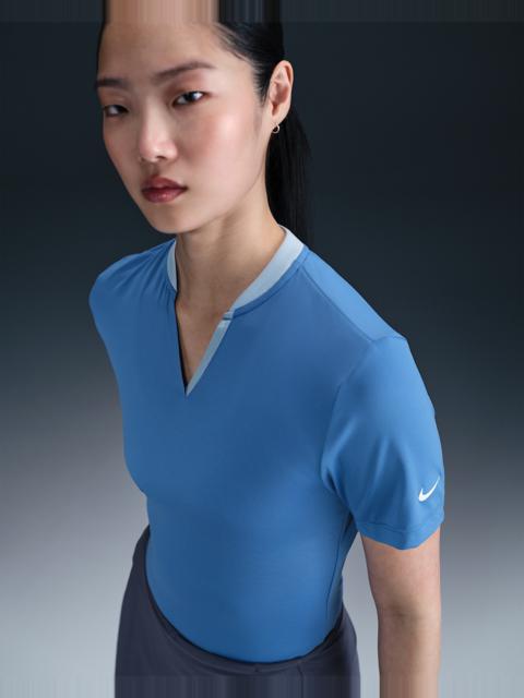 With a tailored fit and sleek collar design, this golf polo gives you a polished look. Lightweight and silky-smooth, the fabric is equipped with UV protection and dries quickly, helping you stay cool and comfortable. Benefits - Nike Dri-FIT technology moves sweat away from your skin for quicker evaporation, helping you stay dry and comfortable. - Optimal length makes top easy to tuck in to high-waisted and mid-rise bottoms. Product Details - Blade collar - 88% polyester/12% spandex - Machine wash - Imported - This product provides UVA and UVB protection from the sun only in the areas covered by the garment. To protect exposed areas, the use of good quality sunscreen is recommended. - Shown: White/White/Black - Style: FZ6308-100 SIZE & FIT Model is wearing size S and is 5′9″175cm Sm fit: sleek and tailored