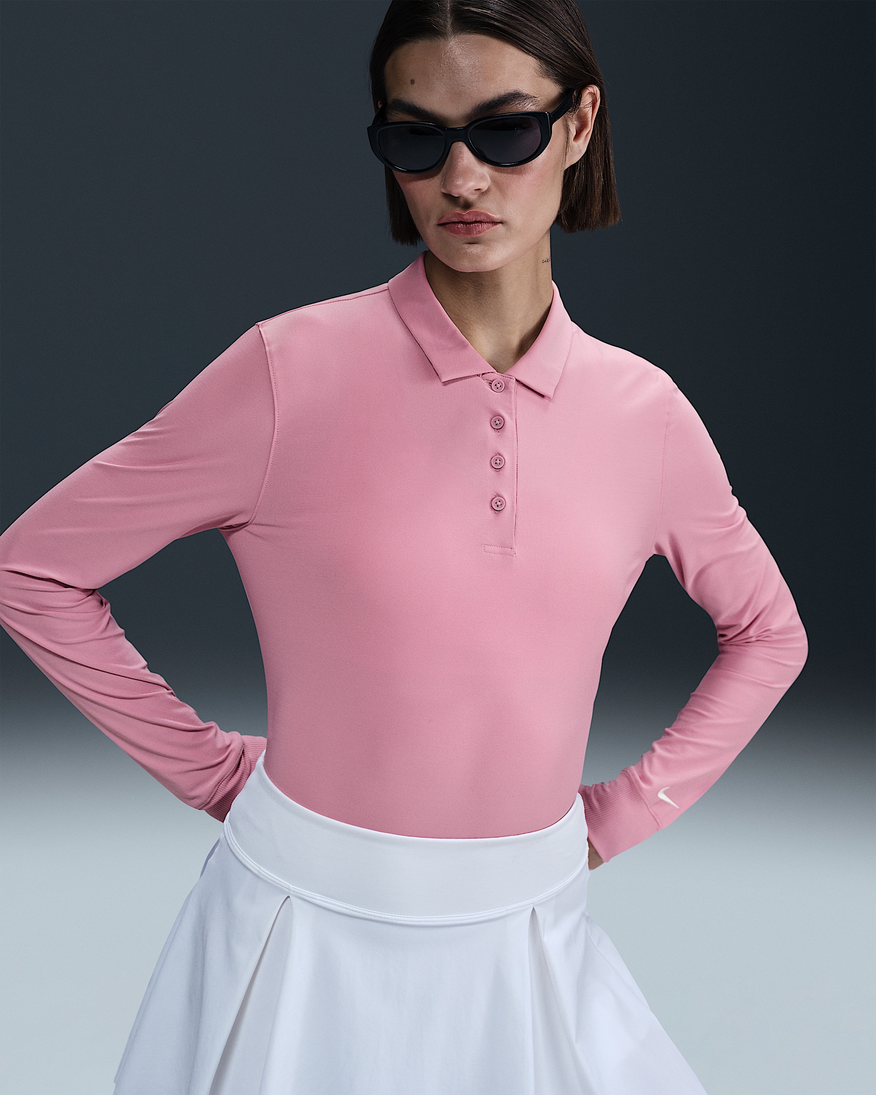 Made with super-smooth, ultra-stretchy fabric that dries quickly, this classic golf polo makes it easy to focus on your swing. Benefits - Nike Dri-FIT technology moves sweat away from your skin for quicker evaporation, helping you stay dry and comfortable. - Ribbed insets at hem stretch through your full range of motion. Product Details - Body: 79% polyester/21% spandex. Rib: 88% polyester/12% spandex. - 4-button placket - Ribbed cuffs and hem insets - Embroidered Swoosh logo on left arm - Machine wash - Imported - Shown: Elemental Pink/White - Style: FQ1570-699 SIZE & FIT Model is wearing size S and is 5′10″178cm Standard fit: easy and traditional