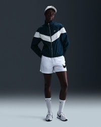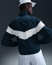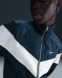 Reaching back to our roots, this roomy jacket's design lines pull inspiration from the original Windrunner. A water-repellent finish and UV technology built into the crinkle-woven fabric help keep you good to go come rain or shine. Benefits - Pockets provide quick storage for keys, phone and cold hands. - Sweat-wicking jersey lining in upper body and arms feels soft and comfortable. - Water-repellent finish helps keep you dry in wet weather. Product Details - Body: 100% nylon. Lining: 75% polyester/13% cotton/12% rayon. Panels lining: 100% polyester. - Embroidered Swoosh logo - This product provides UVA and UVB protection from the sun only in the areas covered by the garment. To protect exposed areas, the use of good quality sunscreen is recommended. - Machine wash - Imported - Shown: Armory Navy/Sail/White - Style: FV6304-478 SIZE & FIT Model is wearing size S and is 5′11″180cm Loose fit: roomy and relaxed