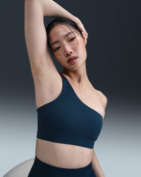 Balance your day in comfort in this asymmetrical Zenvy sports bra. Its lightweight InfinaSoft fabric gives you softness that you can feel with every bend, stretch and shift. Benefits - Nike Dri-FIT technology moves sweat away from your skin for quicker evaporation, helping you stay dry and comfortable. - Two sewn-in pads resist shifting for reliable coverage. - Light support gives you a gentle hold with plenty of freedom. Product Details - Body: 63% nylon/37% spandex. Lining: 80% polyester/20% spandex. Pad Back Fabric: 100% polyester. Pad: 100% polyurethane. - Machine wash - Imported - Shown: Armory Navy/White - Style: HQ9182-478 SIZE & FIT Model is wearing size S Model height: 5′9″175cm Model bust: 32″81cm Tight fit: snug and form-fitting Light support: feels ke a soft hug with plenty of freedom