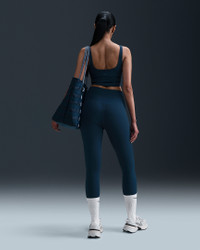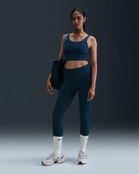 Move freely in this longline Zenvy bra. Its InfinaSoft fabric has softness you can feel with every bend, stretch and shift. Light support gives you a gentle hold that's great for low-impact workouts and all-day comfort. Benefits - Nike Dri-FIT technology moves sweat away from your skin for quicker evaporation, helping you stay dry and comfortable. - Wide-rib InfinaSoft fabric adds texture to your look. Product Details - Body: 77% nylon/23% spandex. Lining: 63% nylon/37% spandex. - Machine wash - Imported - Shown: Armory Navy/Armory Navy/White - Style: HF1542-478 SIZE & FIT Model is wearing size S Model height: 5′8″173cm Model bust: 30″76cm Tight fit: snug and form-fitting Light support: feels ke a soft hug with plenty of freedom