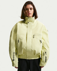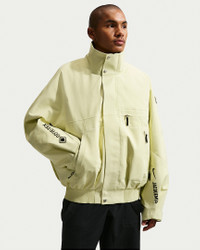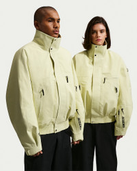 Nike and French designer Simon Porte Jacquemus come together once again to bring elegance to sportswear and outdoor staples. The exterior shell jacket is made of triple layer GORE-TEX, giving you waterproof support. Six zippered pockets, a high collar and underarm vents complete the look. The interior jacket steps out with classic bomber style and lightweight PrimaLoft filling for added warmth. Zippers secure the jackets to one another so they move as a single piece when worn together. Product Details - Standard fit - Water repellent - Elastic ribbed hem (exterior jacket) - Ribbed collar (internal jacket) - Zippered hand pockets, chest pocket and 3 sleeve pockets (exterior jacket) - 2 exterior and 2 interior drop-in pockets (internal jacket) - Adjustable sleeves (exterior jacket) - Underarm vent (exterior jacket) - Interior zipper system to connect jackets - Inner content: Body/Lining: 100% nylon. Fill: 100% polyester. - Outer content: 100% nylon - Machine wash - Imported - Shown: Citron Tint/Black - Style: HQ5694-868 SIZE & FIT Standard fit: easy and traditional