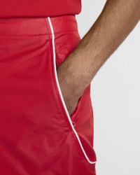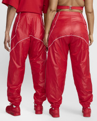 French designer Simon Porte Jacquemus and Nike team up to create and curate another collection. Clean, crisp and classic, these track pants borrow some iconic design lines while bringing their own modern flair. They're fully equipped with water-repellent and wind-resistant crinkled nylon fabric to help you stay dry. The cool mesh lining offers breathability. Designed to feel relaxed through the seat and thighs to provide an easygoing, casual fit. Product Details - Front snap and zip closure with Swoosh logo at center front - Elastic on back of waistband - Encased elastic at pant hem - Body: 100% nylon. Lining: 100% polyester. - Machine wash - Imported - Shown: University Red/White - Style: FV5701-642 SIZE & FIT Female model is wearing size S and is 5'9"175cm Male model is wearing size M and is 6'3"191cm Standard fit: easy and traditional Fl length: hits below ankle