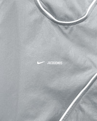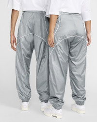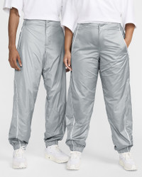 French designer Simon Porte Jacquemus and Nike team up to create and curate another collection. Clean, crisp and classic, these track pants borrow some iconic design lines while bringing their own modern flair. They're fully equipped with water-repellent and wind-resistant crinkled nylon fabric to help you stay dry. The cool mesh lining offers breathability. Designed to feel relaxed through the seat and thighs to provide an easygoing, casual fit. Product Details - Front snap and zip closure with Swoosh logo at center front - Elastic on back of waistband - Encased elastic at pant hem - Body: 100% nylon. Lining: 100% polyester. - Machine wash - Imported - Shown: Particle Grey/White - Style: FV5701-073 SIZE & FIT Female model is wearing size S and is 5'8"173cm Male model is wearing size M and is 6'3"189cm Standard fit: easy and traditional Fl length: hits below ankle