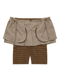 x KNWLS check-pattern mini skirt Highlights - Brown - Checked pattern - Drawstrings waistband - Stitching detail Imported Composition Nylon 93%, Spandex/Elastane 7% Washing instructions Read Manufacturer Guidelines