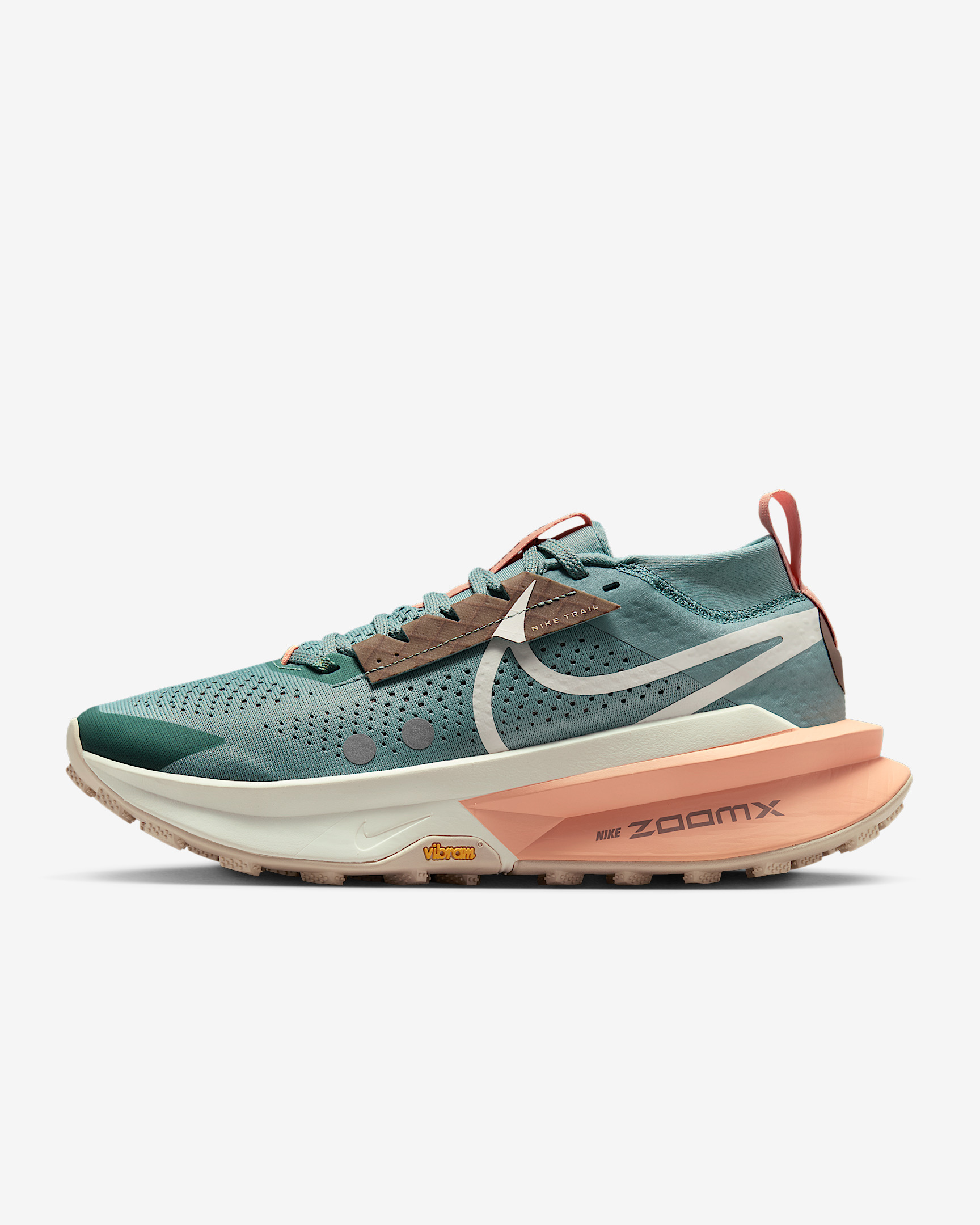 Up the mountain, through the woods, to the top of the trail you can go. Equipped with an ultra-responsive ZoomX foam midsole, the Zegama 2 is designed to conquer steep ridges, jagged rocks and races from trailhead to tip. Optimal cushioning complements a rugged outsole made for your trail running journey. More Benefits - Ankle gaitor helps limit trail debris. - Overlays stretch across the toe for extra durability. Product Details - Weight: Approx. 264g/9.3oz (Women's US 8) - Heel-to-toe drop: 4mm - Reflective details - Not intended for use as Personal Protective Equipment (PPE) - Shown: Cannon/Orange Chalk/Mink Brown/Soft Pearl - Style: FD5191-008