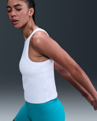 Move freely in this slightly cropped, fitted Zenvy tank. It's made with InfinaSoft fabric for softness you can feel with every bend, stretch and shift. Benefits - Nike Dri-FIT technology moves sweat away from your skin for quicker evaporation, helping you stay dry and comfortable. - Wide-rib InfinaSoft fabric adds texture to your look. Product Details - 77% nylon/23% spandex - Machine wash - Imported - Shown: White - Style: HF2765-100 SIZE & FIT Model is wearing size S and is 5′9″175cm Tight fit: snug and form-fitting