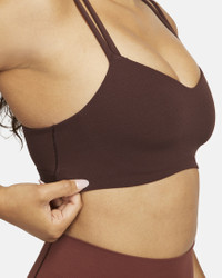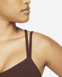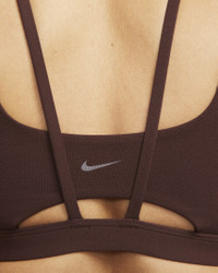 Feel calm and confident all day long in this strappy, gently supportive bra. A sewn-in 1-piece pad offers enhanced coverage and shaping while sweat-wicking technology helps keep you cool and comfortable. The fabric in the body and straps is lightweight, with softness that you can feel with every bend, stretch and shift. With a rounded V-neck to top it off, the bra has a clean finish that goes with any outfit. Benefits - Light support gives you a gentle hold with plenty of freedom that's great for low-impact workouts or all-day comfort. - Nike Dri-FIT technology moves sweat away from your skin for quicker evaporation, helping you stay dry and comfortable. Product Details - Body: 63% nylon/37% spandex. Front and back liner: 82% polyester/18% spandex. Pad: 100% polyurethane. Pad back fabric: 100% polyester. - Machine wash - Imported - Shown: Earth/White - Style: DO6608-227 SIZE & FIT Model is wearing size S Model height: 5′11″180cm Model bust: 34″86cm Tight fit: snug and form-fitting Light support: feels ke a soft hug with plenty of freedom