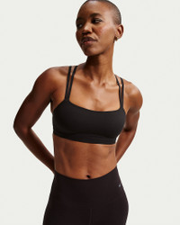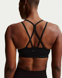 Bend and stretch in total confidence with this sweat-wicking Zenvy bra. Still lightweight, our updated InfinaSoft fabric is now ultrasoft with stretch designed to recover its shape wear after wear. A sewn-in pad offers optimal shaping and coverage. Benefits - Nike Dri-FIT technology moves sweat away from your skin for quicker evaporation, helping you stay dry and comfortable. - Light support gives you a gentle hold with plenty of freedom that's great for low-impact workouts or all-day comfort. - Sewn-in pad offers subtle shaping and coverage. Product Details - Body: 69% nylon/31% spandex. Panels lining: 88% polyester/12% spandex. Pad back fabric: 100% polyester. Pad: 100% polyurethane. - Machine wash - Imported - Shown: Black/Cool Grey - Style: IB9847-010 SIZE & FIT Tight fit: snug and form-fitting Light support: feels ke a soft hug with plenty of freedom
