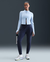Made with the same InfinaSoft fabric as our Zenvy leggings, these joggers still have softness you can feel with every bend, stretch and shift. An easier fit through the legs tapers at the waist and ankles for a gently supportive sensation. Benefits - Nike Dri-FIT technology moves sweat away from your skin for quicker evaporation, helping you stay dry and comfortable. - Back pocket fits most phones. - Side pockets provide quick storage for keys and cold hands. Product Details - Body: 63% nylon/37% spandex. Pocket bags/Gusset lining: 84% nylon/16% spandex. - Machine wash - Imported - Not intended for use as Personal Protective Equipment (PPE) - Shown: Midnight Navy/Black - Style: FV7924-410 SIZE & FIT Model is wearing size S and is 5′9″175cm Standard fit: easy and traditional Gentle support: feels ke a soft hug with plenty of freedom Fl length: hits below ankle High-Waisted: sits at or above your natural waist for more coverage
